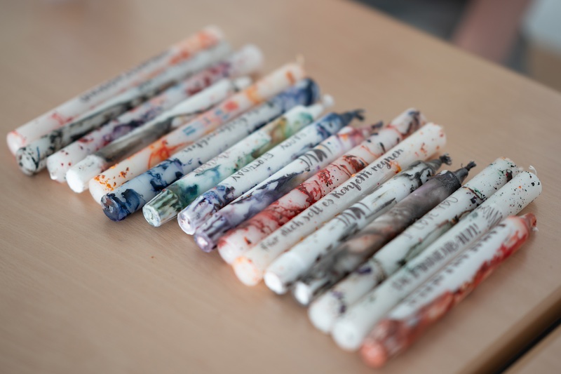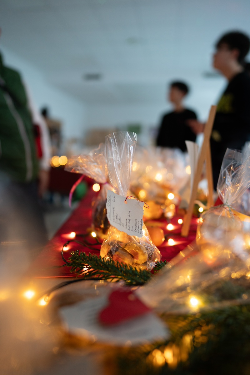 Erstmals stand der Verkauf von selbstgemachten Produkten im Mittelpunkt, darunter kunstvoll bemalte Steine, bunte Kerzen, Teelichter und viele weitere Unikate. Die Verkaufsstände waren ein echter Magnet für Eltern und Besucher, die die Gelegenheit nutzten, kleine Schätze zu erwerben – und das zu fairen Preisen. Besonders beliebt waren die selbstgebackenen Plätzchen, die die 9. Klassen vorbereitet hatten.