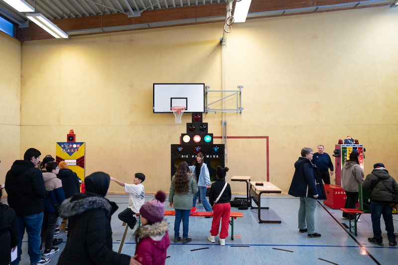 Die Sporthalle verwandelte sich in ein Mitmachparadies. Spiele wie Jack oder die Pyramide und ein spannender Papierflieger-Wettbewerb sorgten für jede Menge Unterhaltung. Die Mitmachstationen waren vor allem bei den jüngeren Besuchern ein absoluter Renner und trugen zu einer ausgelassenen Stimmung bei.